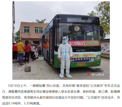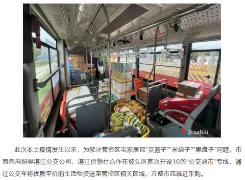 湛江市首次推出“公交超市”专线,管控区居民“菜篮子”“米袋子”有保障