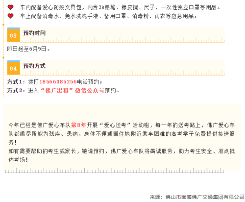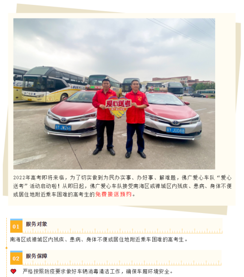即日起接受预约 | 佛广爱心车队“爱心送考”活动来啦!