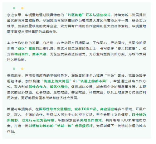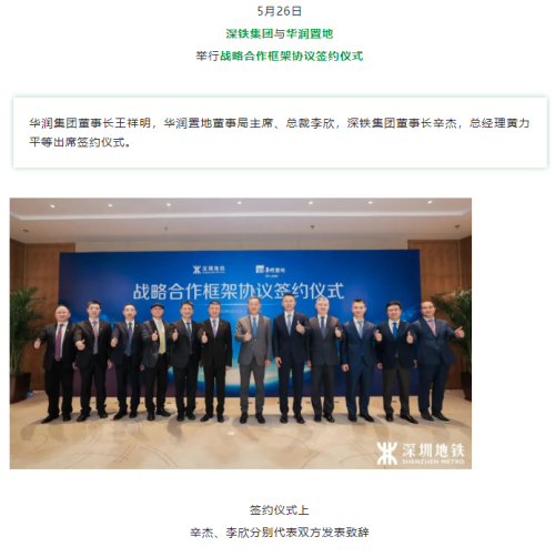 深铁集团与华润置地达成战略合作