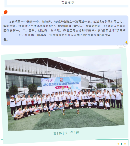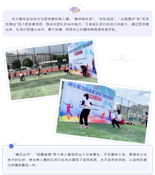 激情五月,神采飞扬。5月28日,市交通集团本部工会在市体育中心足球场副场举办了一场趣味满FUN、欢乐无比的趣味运动会,集团公司本部职工们斗志昂扬,组成8支队伍进行激烈比拼,力争第一。比赛现场气氛热烈,如同一场热闹派对。
