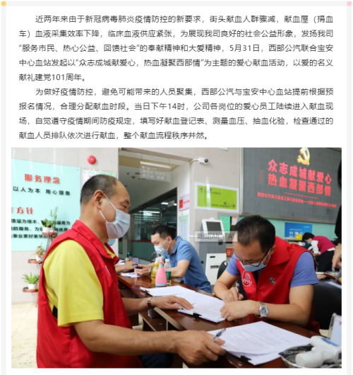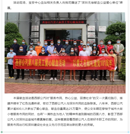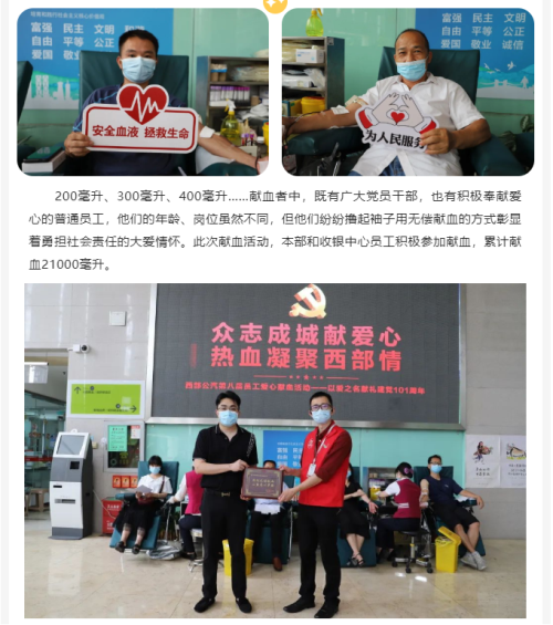 众志成城献爱心 热血凝聚西部情——西部公汽第八届员工爱心献血活动