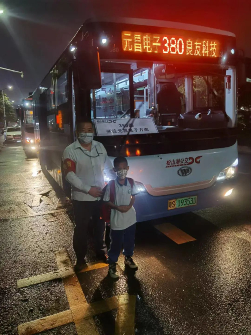 5月11日18:55许,松山湖公交公司松山湖车队380路车长范军恩驾驶公交车途经大岭山光大山湖城附近,突然发现一名背着书包的小朋友独自在路上奔跑,边跑边向他招手。此时大雨倾盆,虽然附近没有公交停靠站,但范军恩担心小朋友的安全,还是打着双闪缓慢靠边停车。