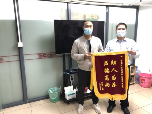 次日,带着感谢信和一面“助人为乐 品德高尚”的锦旗,郑先生冒雨来到松山湖公交公司。郑先生说,此次到访,是为表达感谢和表扬!这个善举对范军恩车长来说只是一次举手之劳,但对郑先生家庭而言却意义重大。