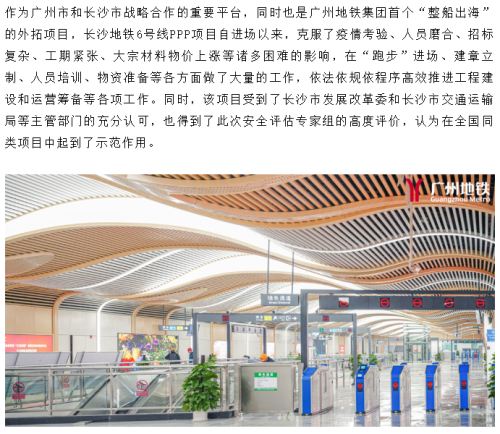 穗长合作首个轨道交通PPP项目通过初期运营前安全评估