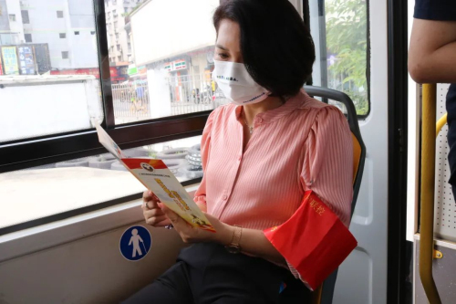 领导嘉宾们登上专线,亲身体验了一把“移动阵地齐学法”的浓厚氛围。
