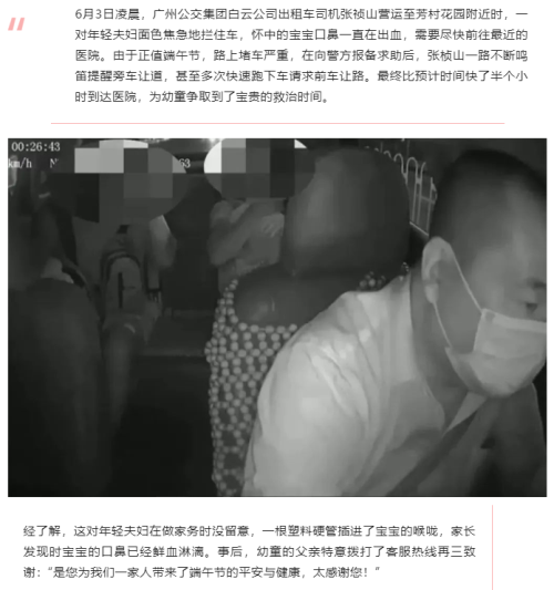 白云出租的哥护送幼童就医