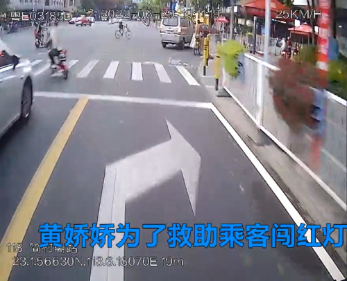 但眼看乘客快要昏迷,黄娇娇担心病情会恶化,在征得乘客同意和报备公司之后,她决定把发病乘客送往最近的佛山中医院救治。时间就是生命,一路上,黄娇娇开启应急灯,鸣笛提醒车辆避让。黄娇娇还临时更改营运路线,连飞几个站,在保障安全的情况下连闯四个红灯,将公交车化身为“救护车”,直奔医院。