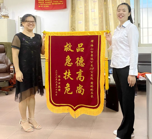 7月2日上午,佛山粤运公交营运四公司办公室收到一面锦旗,原来是日前在118路公交车上突发癫痫的乘客何先生家人,特意前来感谢女车长黄娇娇及时将何先生送院救治。