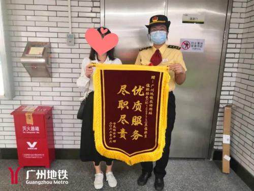 日前,一位女乘客给一号线农讲所站送来一面写着“优质服务,尽职尽责”的锦旗,随后还发感谢信到服务热线邮箱再次致谢。