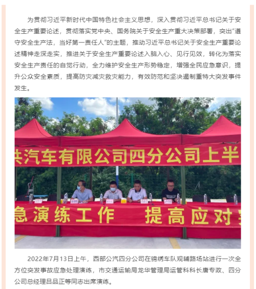 应急演练筑防线 未雨绸缪保安全——西部公汽四分公司开展上半年综合应急演练
