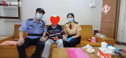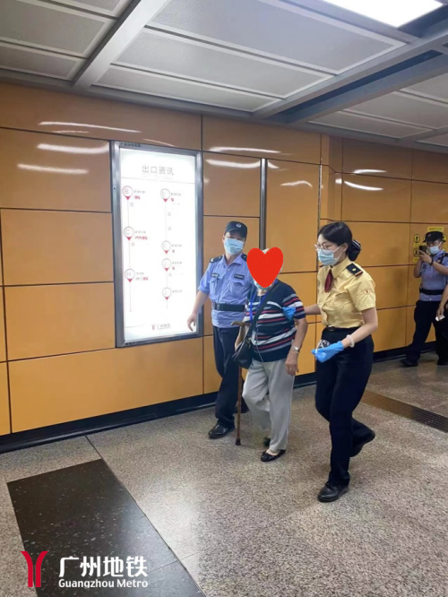 经沟通了解,老奶奶表示自己家住鹭江地铁站附近,当天与保姆共2人从鹭江站出发,计划到东山口站附近省人民医院取药。没想到上车后与保姆走散,不知不觉到了磨碟沙站。老人家不认识路,也没有带手机,记不住保姆的电话和名字,无法联系到保姆和家人。好在遇到了个热心小伙,及时把她带下了车,找到了车站工作人员。站务员胡文一边耐心地安慰老奶奶:“奶奶,您别着急,我们会尽力帮您找到家人!”一边观察老奶奶是否携带有家人联系方式的挂件。只见老奶奶脖子上挂着一个牌子,印有自己姓名和穗康码,没有其他信息。在车站工作人员的帮助下,老奶奶好不容易记起儿子的电话号码,但是电话无人接听。