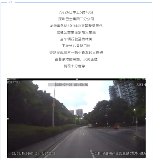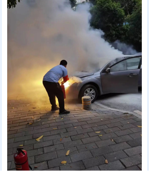 爱的星火丨好样的!路遇私家车自燃,公交驾驶员提起灭火器就上!