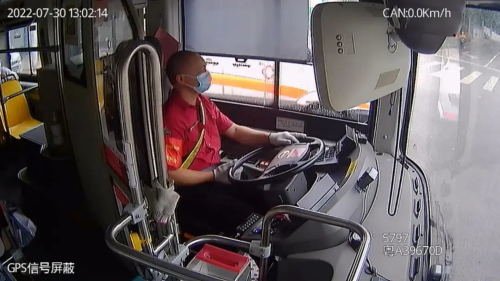 7月30日中午,25路线钟国威车长驾车行驶至同福东路同庆路交汇处等待交通信号灯。