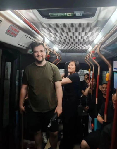 外国友人体验“预约公交”服务