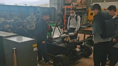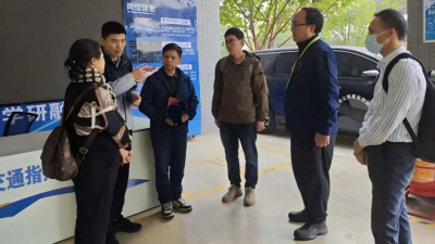 调研组一行先体验校区试运行的无人驾驶文远小巴,实地考察该系教学设施与学生实操情况,深入了解其智慧交通应用场景与人才培养现状。