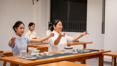 静雅之处,尽是匠心与禅意。从拓印的古朴浑厚到书法的笔走龙蛇,学员们亲手触碰非遗的脉搏;茶艺室内,他们凝神观茶、静心品茗,在一提一放、一斟一酌间,体味中国茶道的处世哲学。清茶一盏,不仅润泽唇齿,更成为连接心灵的无声媒介.