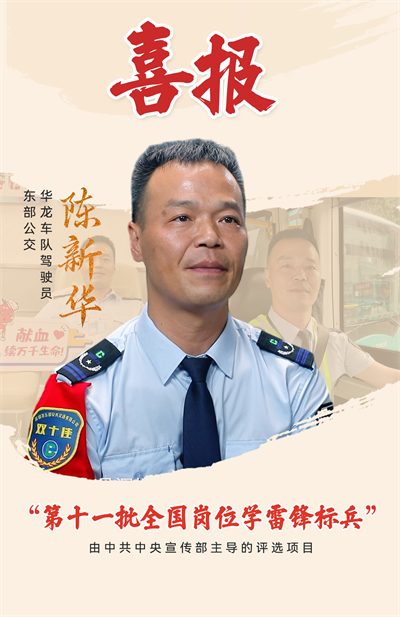 3月5日是第63个学雷锋纪念日。日前,中共中央宣传部命名第十一批全国岗位学雷锋标兵,其中东部公交驾驶员陈新华获此殊荣。