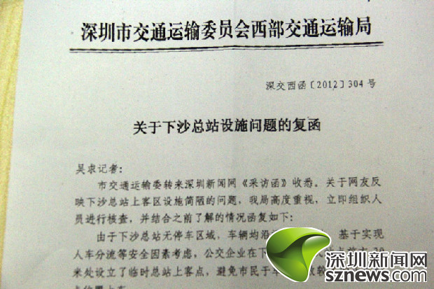 深圳市交委西部交通运输局于22给深圳新闻网来函,承诺将尽快拆除网友反映的临时公交上客点。